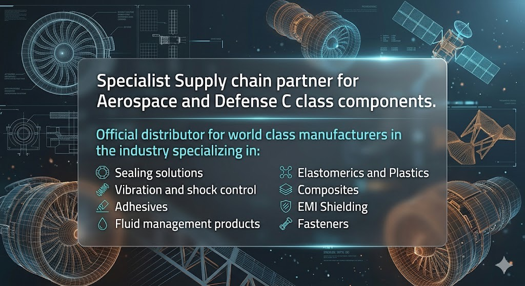 Alongside our own manufacturing facilities we are also official distributors for some of the world's largest Sealing and Vibration control companies. Through this network we have approved material and products for many of the Aerospace and defense primes such as Rolls Royce, Dassault, GE, Leonardo, Collins, Airbus, Boeing, BAE amongst others.