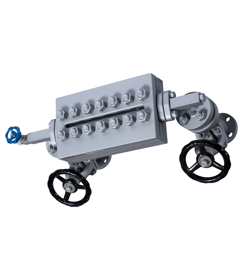 Bi-colour level gauges are primarily used to measure high-pressure water steam. These gauges feature two flat transparent glasses mounted at an angle to each other. Together with the gauge body, they form the chamber containing the medium.